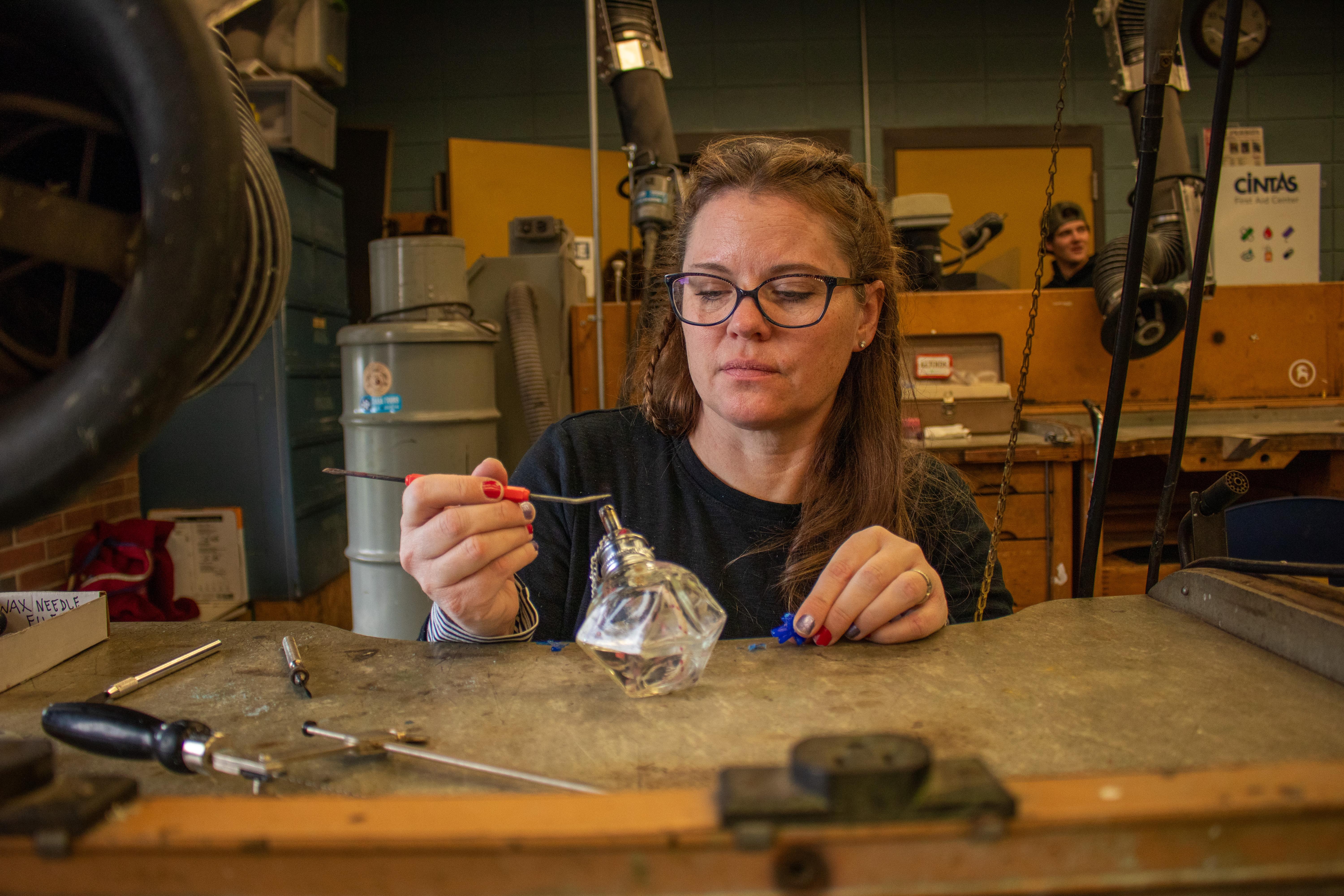 The Studio is divided into areas for benchwork, hollowware, casting, machine work, and clean-up. The studio has a balance of both traditional and modern metalsmithing equipment which enables the students to explore a full range of technical solutions to metalworking problems. The MFA program accepts students in this discipline.